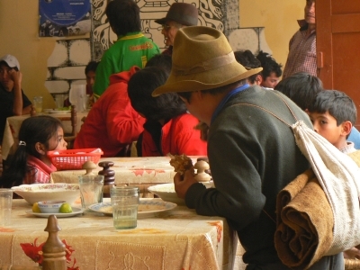 around the globe. The Cordillera Blanca juts out of the sky behind the fair city;