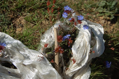 strewn with prayer flags to lay a few ourselves. From our promontory,